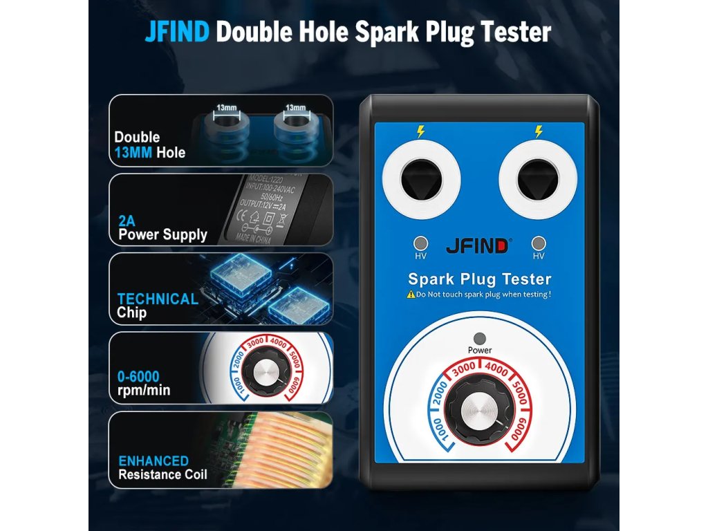 Tester zapaľovacích sviečok JF109 – duálny - 12V pre benzínové motory